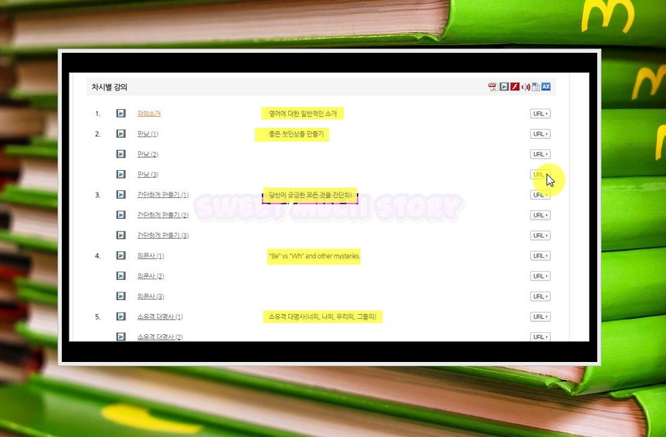 6. 선택한 영어회화 무료 강좌를 이용하여 공부할 때 처음부터 시작할 필요는 없어요. 차시별 강의 리스트를 보고, 학습 내용을 살펴본 후 공부하고 싶은 차시만 선택하여 강의를 들을 수 있어요.