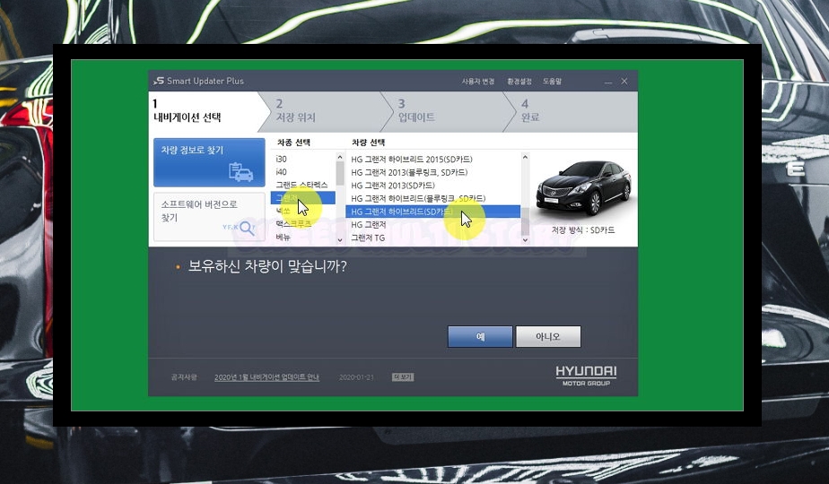 9. 현대자동차 내비게이션을 업그레이드 하는 방법은 간단해요. 우선 업데이트할 기기를 선택해 주세요. 차량 정보나 소프트웨어 버전을 통해 찾을 수 있어요. 그다음 저장할 하드디스크 위치를 선택하면 돼요.