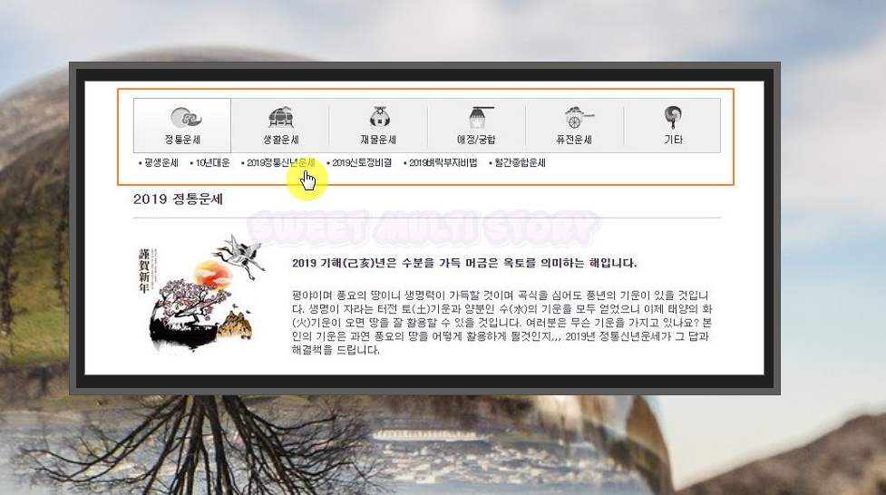 2. 이곳에서는 크게 5가지로 나뉘는데요. 정통운세를 통해 평생운세, 10년 대운, 토정비경 등을 확인해 보실 수 있어요.
