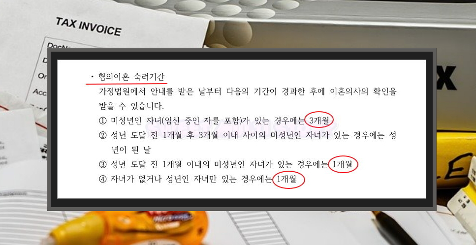 8. 협의이혼을 할 때에는 숙려기간이 있어요. 이성년인 자녀가 있거나 임신 중이라면 숙려기간도 늘어나요. 자녀가 성년인 경우라면 숙려기간은 1개월이에요.