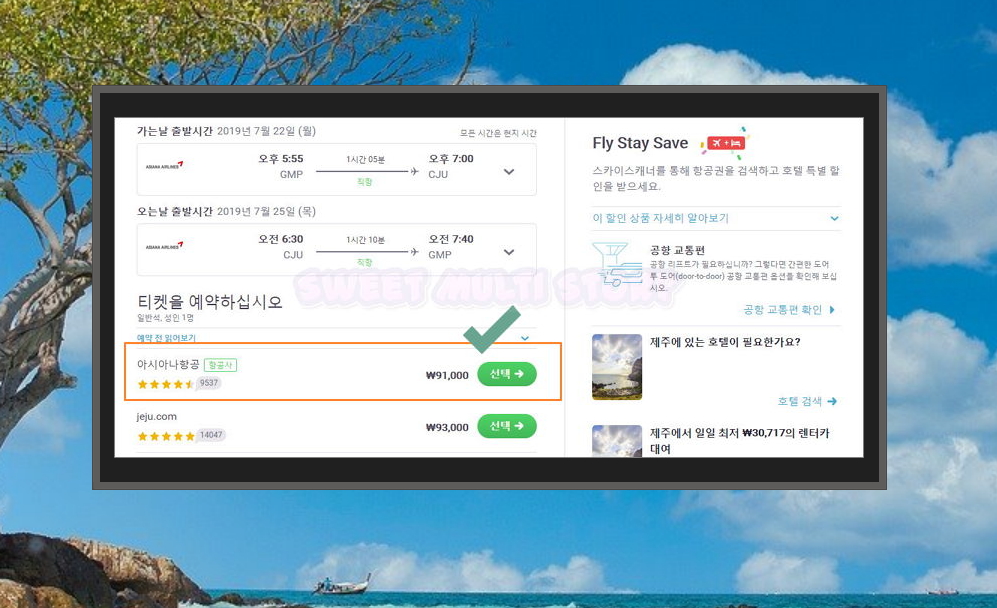6. 우리가 찾는 동안에 제주 비행기표를 누군가 먼저 예매를 했을 수도 있어요. 그렇게 되면 예약 사이트에 접속해도 예매를 진행할 수 없는데요. 여행사 선택을 하면 여행사 사이트에서 해당 티켓을 찾는 과정이 진행 됩니다.