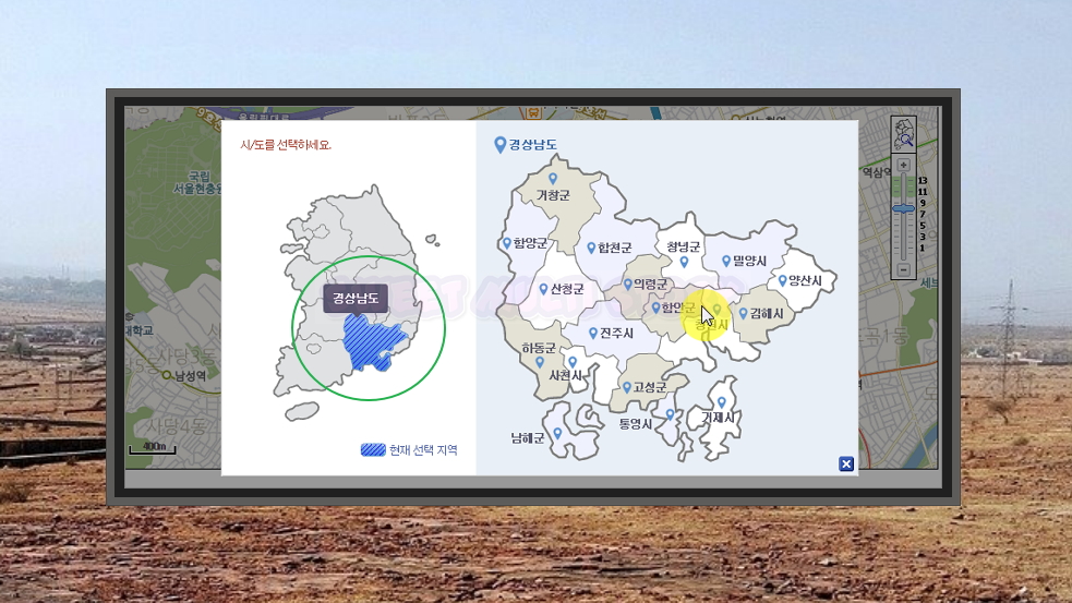 4. 지도로 찾기 서비스를 이용하면 좀 더 편하게 토지 등기부등본 확인이 필요한 주소를 찾을 수 있는데요. 시와 도를 순차적으로 선택해 주세요.
