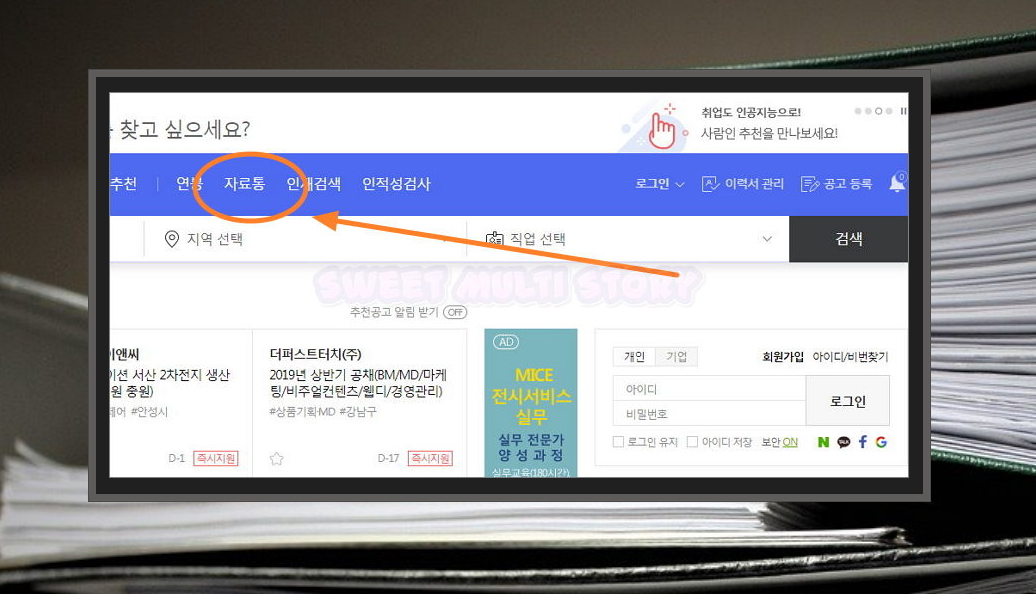2. 제가 말한 서비스를 이용하려면 홈페이지에 있는 메뉴를 선택해야 해요. 바로 자료통인데요. 클릭해보시면 어떤 자료를 얻을 수 있는지 알 수 있어요.