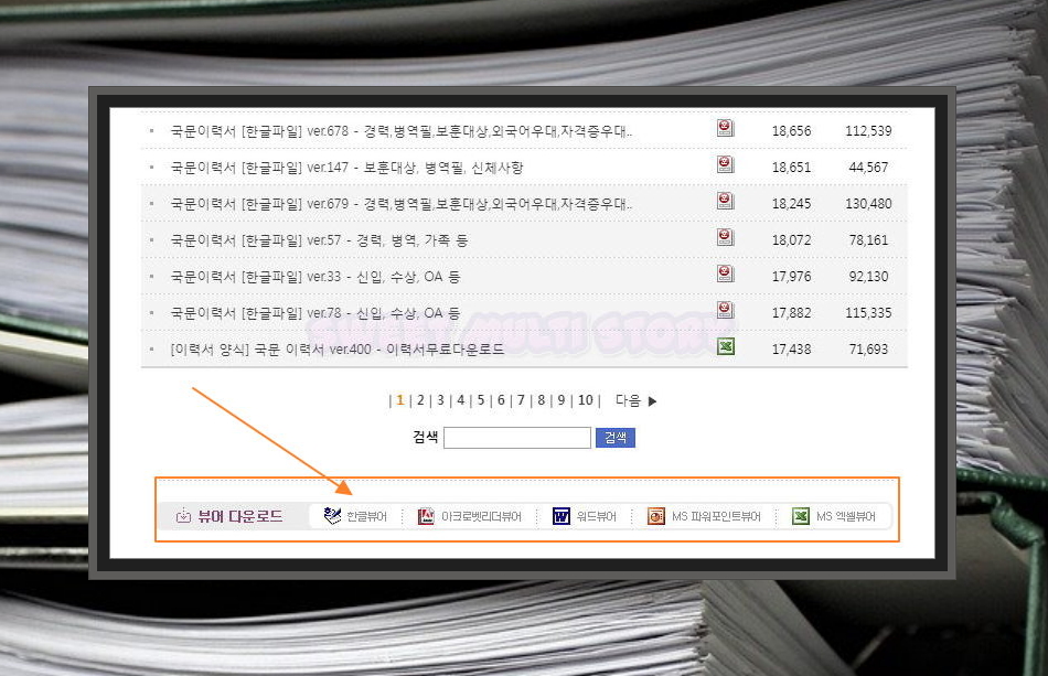 5. hwp 파일을 열 때에는 전용 프로그램인 아래아 한글이 컴퓨터에 설치되어 있어야 하는데요. 비용을 지불하여 구매하는 소프트웨어이기 때문에 PC에 설치되어 있지 않은 분들이 많을 거에요. 그래도 기본이력서를 작성할 수 있는 방법을 알려드릴게요. 뷰어 다운로드 목록에서 [한글뷰어]를 다운 받으시면 돼요. 열기만 가능하고, 수정은 할 수 없어요. 그렇기 때문에 사용하고 싶으시다면 인쇄를 하시면 돼요.