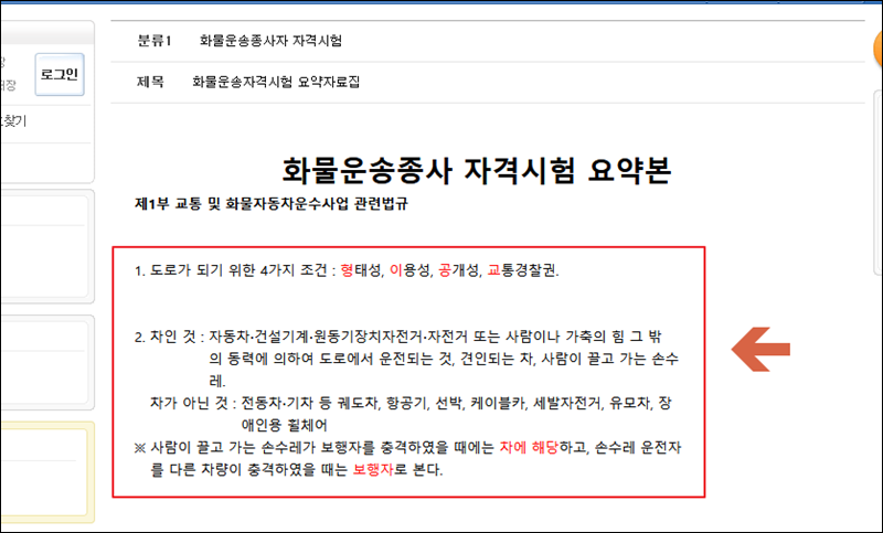 화물운송 자격시험 요약자료집의 경우 사이트에서 무료로 간편하게 열람할 수 있도록 되어 있어요.