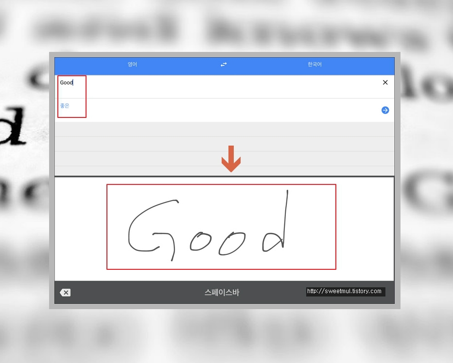 가장 뛰어나다고 생각되는 기능은 2가지인데요. 사진 해독 기능과 직접 그리기 기능이랍니다. 글을 사진으로 찍거나 화면에 손가락으로 글을 쓰면 제대로 인식하는데요. '요즘 기술이 이정도로 발전했구나!'라고 놀랐답니다. 그럼 같이 보겠습니다~