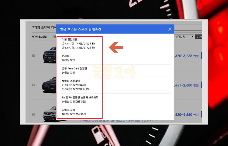 판매조건과 함께 보는 쌍용자동차 신차가격표