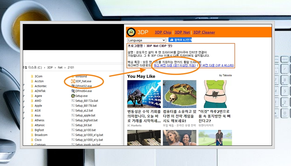 6. 3dp net 사이트에서 최신 버전의 드라이버를 다운 받아주세요. 다운 받은 파일을 실행하면 3dp net 프로그램이 설치될 텐데요. 해당 프로그램을 실행해 보세요.