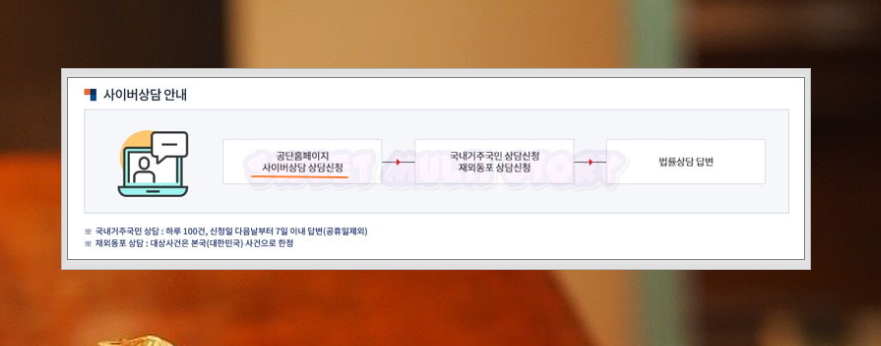 5. 이곳에서 사이버 상담을 신청하는 방법은 어렵지 않아요. 신청 버튼을 클릭한 후 질문 내용을 입력하면 되는데요. 하루에 진행 가능한 건수는 100건이에요. 그렇기 때문에 신청을 한 후 조금 기다려야 될 수 있어요. 재외 동포의 경우에도 해당 서비스를 이용할 수 있으니 참고해 주시길 바래요.