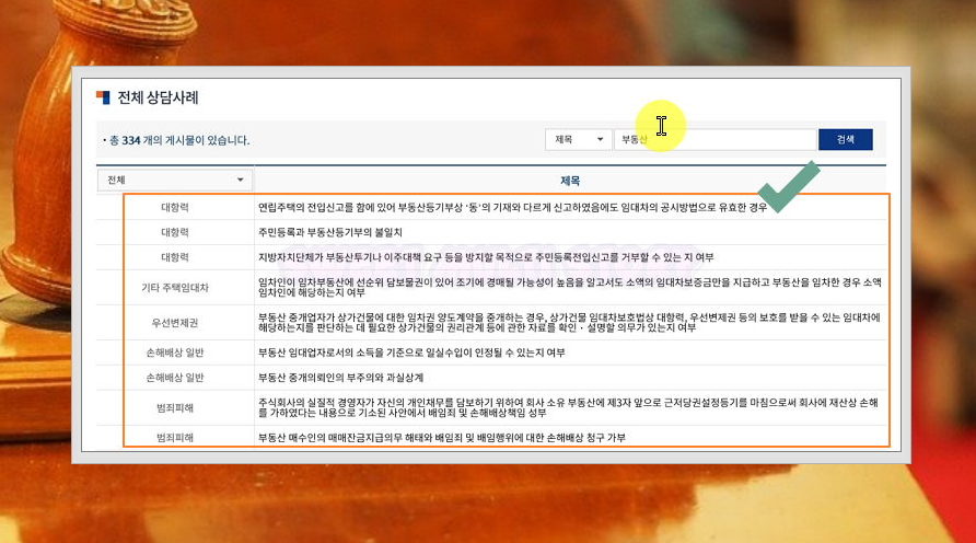 9. 간단한 검색을 통해 본인이 겪고 있는 상황과 유사한 게시물을 찾아보세요. 저는 부동산에 관련된 내용을 찾기 위해 검색해 보았는데요. 334건이나 나타나네요. 클릭해보면 상세한 답변을 확인할 수 있어요.