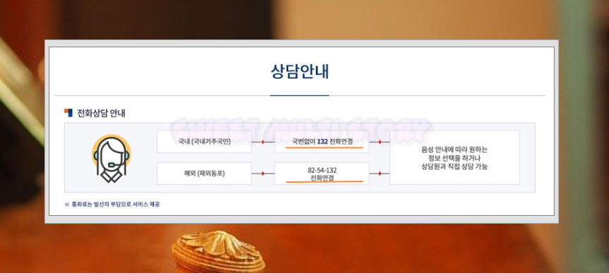 3. 전화를 이용하는 경우에는 국번 없이 안내가 된 번호로 연락을 하면 돼요. 해외에 있는 경우에는 번호가 달라요. 참고로 전화로 진행할 때에는 통화료가 발생되는데요. 해당 요금에 대해서는 본인이 부담해야 해요.