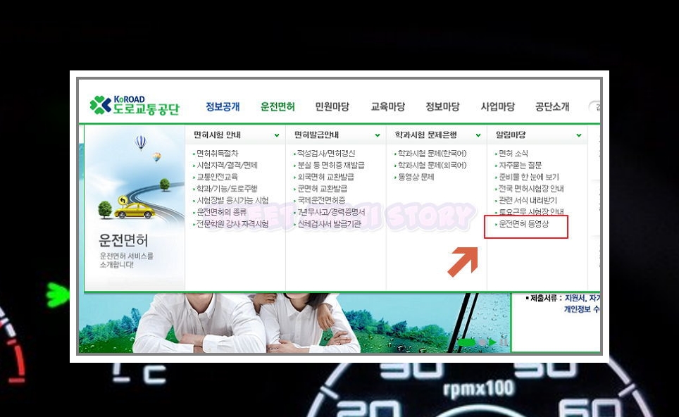 운전면허를 클릭한 후 알림마당에 있는 운전면허 동영상을 클릭해주세요. 이곳에서 운전 기능시험 동영상을 찾을 수 있습니다.