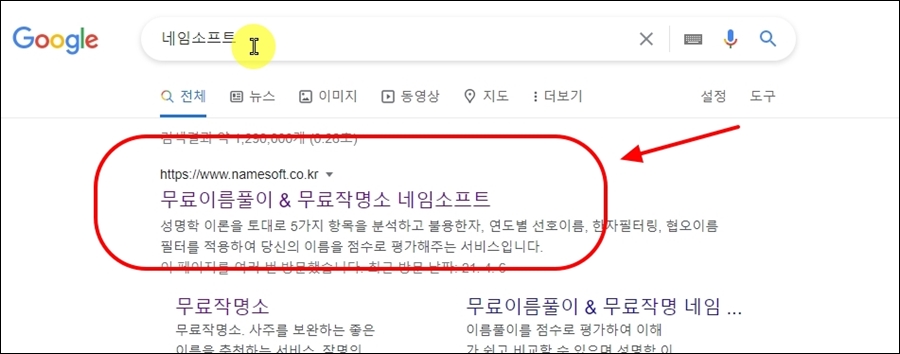이곳은 작명 뿐만 아니라 이름풀이 서비스도 제공하고 있습니다.