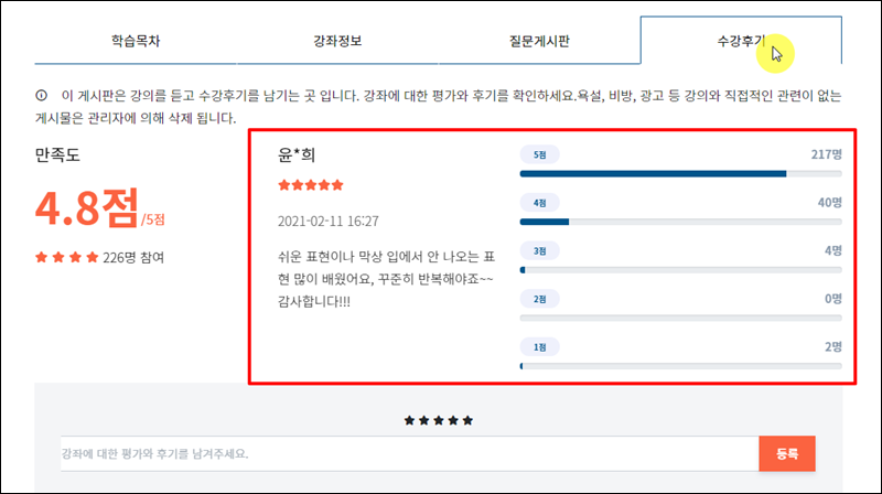영어공부를 할 수 있는 강의가 많아서 어떤 것을 선택해야 할지 모를 수 있는데요. 그러한 경우 수강후기를 참고하면 좋아요.