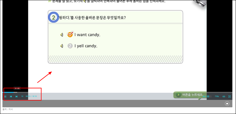 학습하기 버튼을 누르면 강의를 들을 수 있는데요. 동영상 콘텐츠로 되어 있기 때문에 보고, 들을 수 있어요. 이해를 하거나 기억하는 데에 효과적이에요.