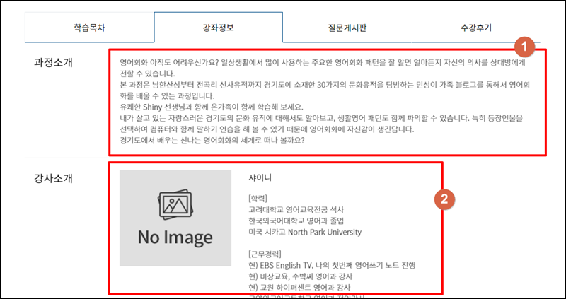 제가 앞서 언급한 강좌는 모두 경기도지식 사이트에서 이용할 수 있는 것들이에요. 여기는 경기도에 사는 사람이 아니더라도 아무 조건 없이 이용할 수 있는 무료 강좌가 많아요. 혼자 영어공부를 하고 싶은데, 좋은 강의 콘텐츠를 찾는 사람에게 정말 좋은 곳이죠. 강의 퀄리티도 준수한 편이기 때문에 굳이 학원을 갈 필요가 있나 싶어요.