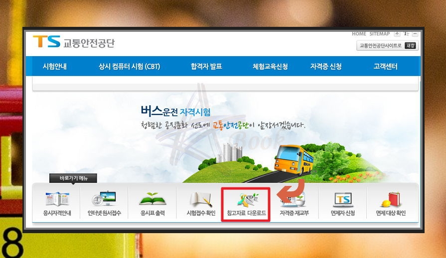공부를 할 때는 참고서와 문제집이 필요한데요. 버스운전자격시험 기출문제를 이용하기에 앞서 참고서라고 할 수 있는 학습자료를 이용하는 방법을 알려드리겠습니다. 학습자료만 몇 번 읽고 응시하여 한 번에 합격하는 분들도 많은데요. 버스운전 자격시험 사이트에 접속해주세요.