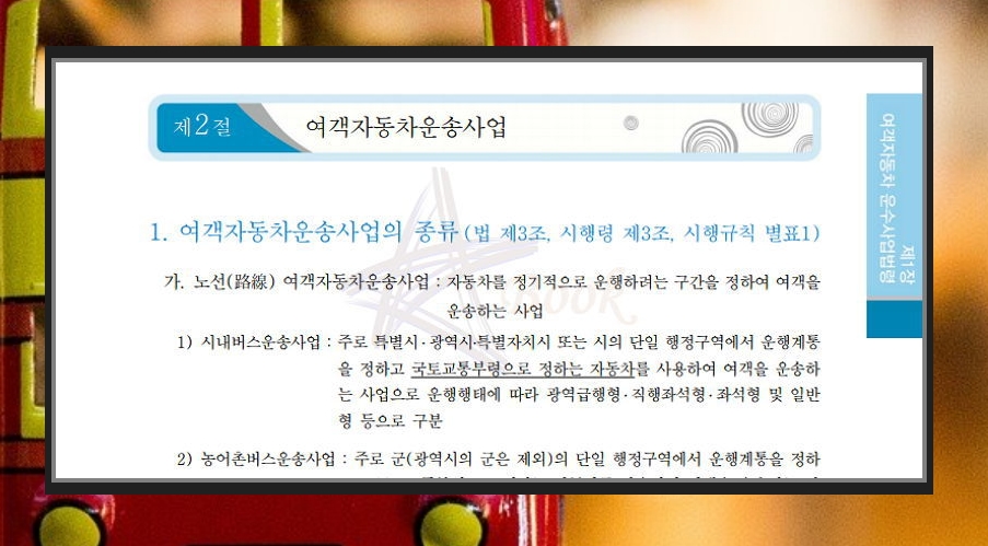 버스운전자격시험을 위한 학습자료를 열어보면 위와 같이 나오는데요. 내용이 알차기 때문에 공부하기 정말 좋습니다. 이것을 가지고 기출문제가 만들어진다고 보시면 돼요.