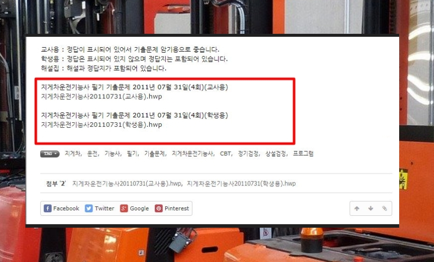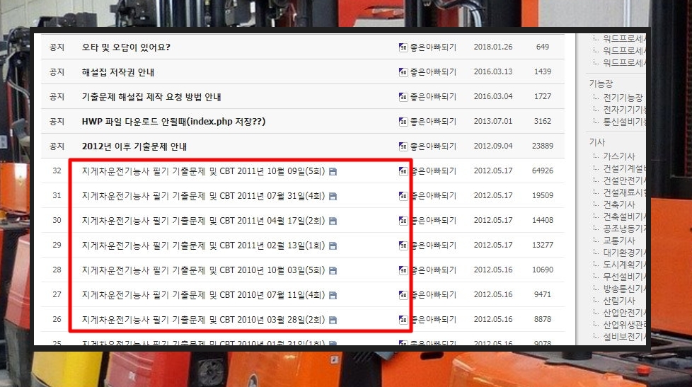 컴퓨터로 풀 수 있는 지게차 필기 기출문제 내려 받기.