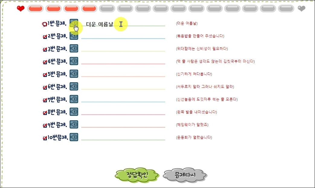 여기서는 듣고 따라 입력하는 방식으로도 컴퓨터 자판을 익힐 수 있어요.