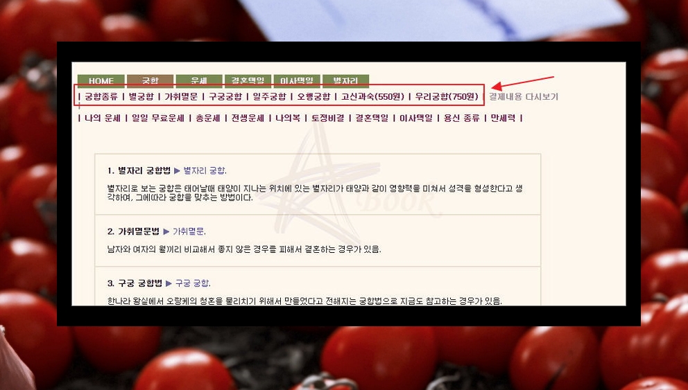 여기는 전통 궁합을 잘보는 사이트에요. 대부분 서비스를 무료로 이용할 수 있어요.