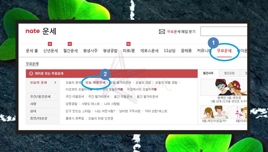 무료로 이용할 수 있는 역술 서비스를 많이 제공하는 사이트가 있어요. 바로 네이트 운세 사이트인데요. 이곳에서는 띠를 가지고, 재미있는 운세를 볼 수 있게 해줘요. 꿈해몽도 할 수 있고요.