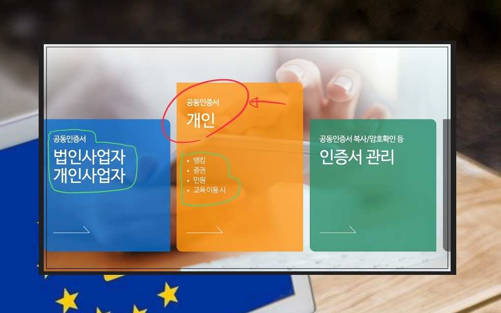 한국정보인증에서 공인인증서를 발급 받을 때 선택해야 할 것이 있습니다. 개인용으로 만들 것인지 법인사업자 또는 개인사업자 용으로 만들 것인지 선택해야 하는데요. 어떤 것을 선택해야 할지 모르겠다면 "개인"을 선택해 주세요. 사업활동에 필요한 전자세금계산서 업무용으로 사용할 것이라면 사업용을 선택하시면 되고요.