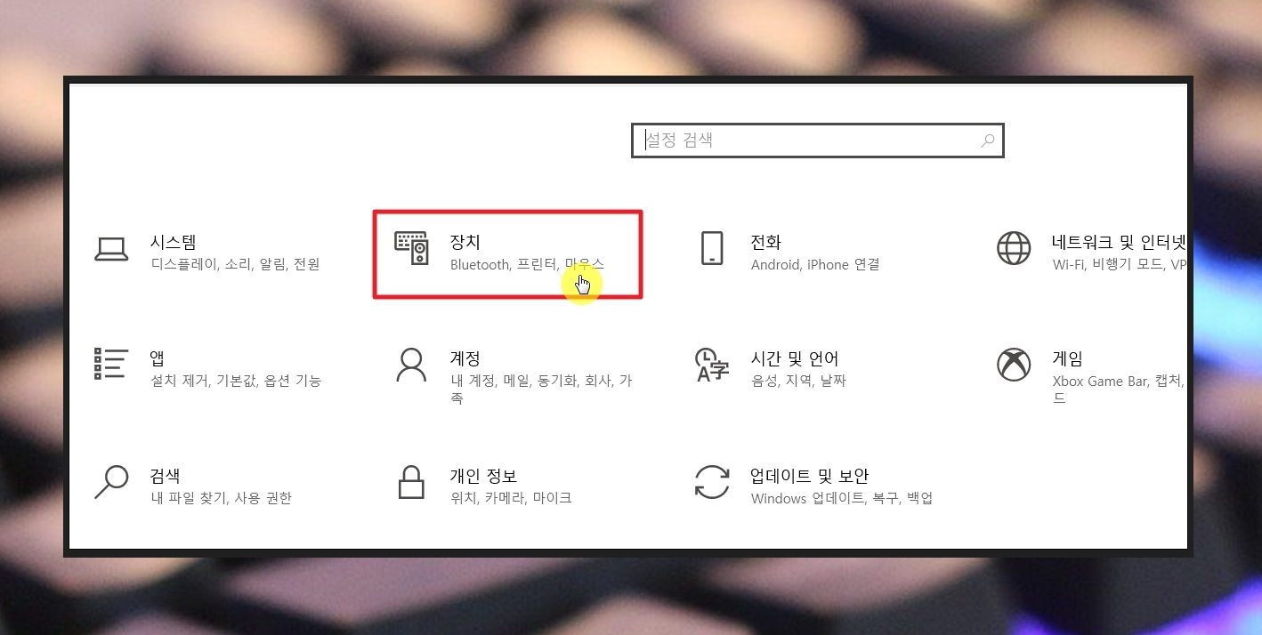 이제 본격적으로 키보드 입력이 안될때 어떻게 해결해야 하는지 알려드리겠습니다. 윈도우 제어판에서 [장치] 메뉴를 선택해 들어가주세요.