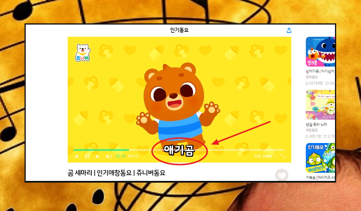 유익하고 편리한 어린이 동요 무료 연속 듣기 진행하기.