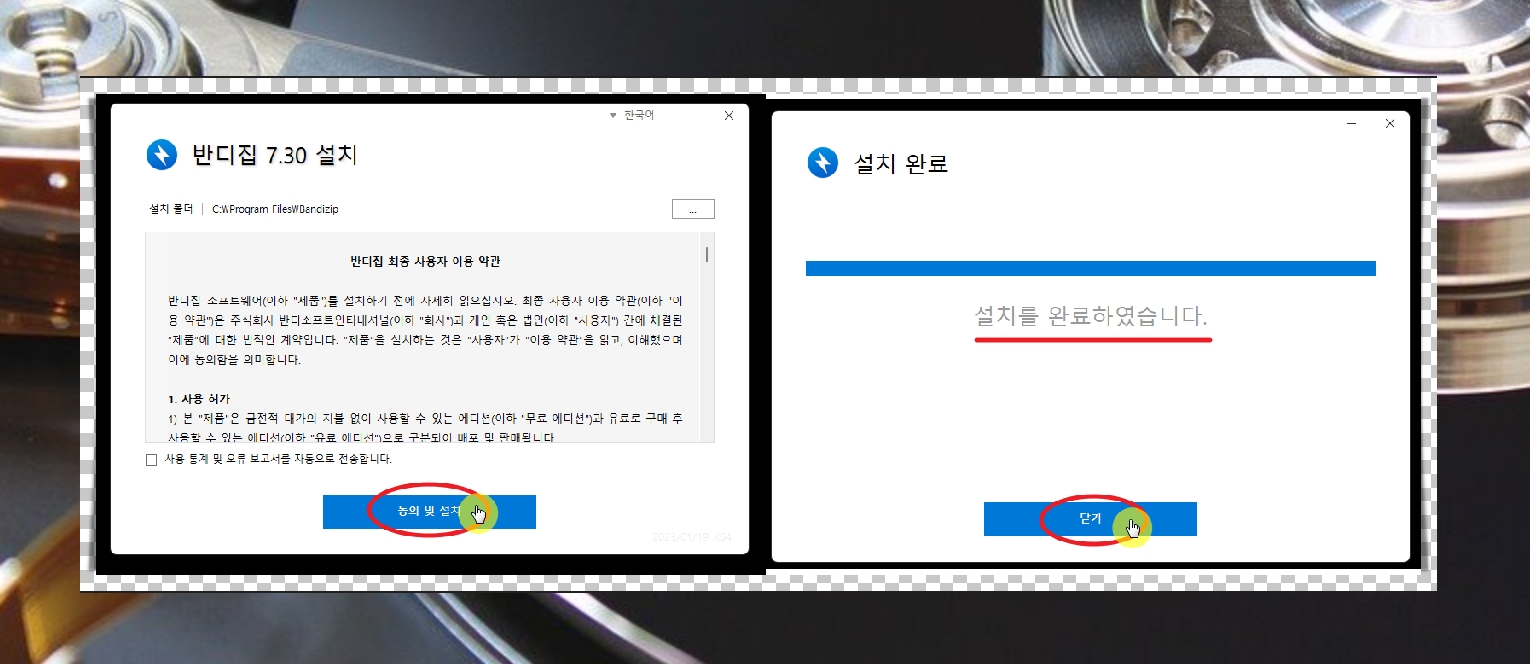 최신 버전으로 반디집을 설치하고 있는데요.