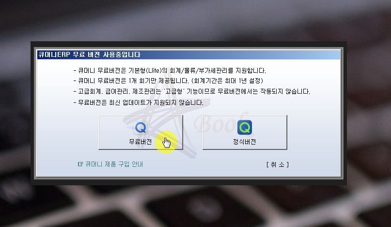 기본 형은 회계, 물류, 부가세 관리를 할 수 있고, 정식 버전은 고급 기능을 갖추고 있는데요. 기본형에서 1개 회기만 제공된다고 되어 있는데, 매년마다 갱신할 수 있습니다. 무한정 사용할 수 있는 무료 프로그램이라고 할 수 있어요.