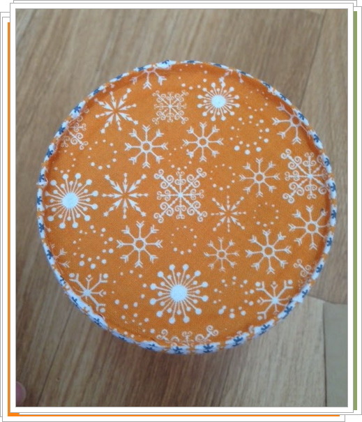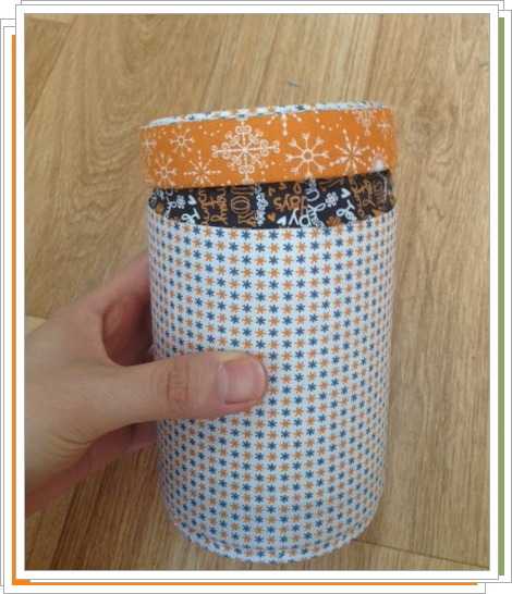 그 다음에는 뚜껑의 옆면을 주황색 스티커로 붙여주고요,