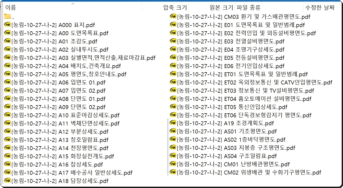 무료로 사용할 수 있는 "반디집"이나 "알집"과 같은 프로그램을 이용하여 압축을 해제하면 되는데요. zip 파일 안에는 pdf 문서로 된 설계도면 자료가 들어있어요. 그렇기 때문에 이곳에서는 pdf 파일을 열 수 있도록 "뷰어 프로그램"을 제공하고 있습니다.