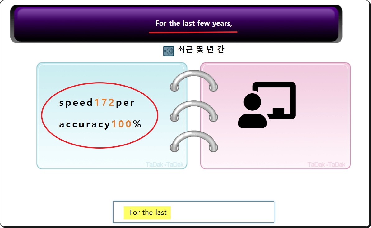 영어 단어를 제대로 입력하는 수준이 되었다면 이번에는 영어 문장을 가지고 타자를 쳐보세요. 이 경우에도 단어를 가지고 연습할 때와 동일하게 정확도를 100% 유지해야 합니다.