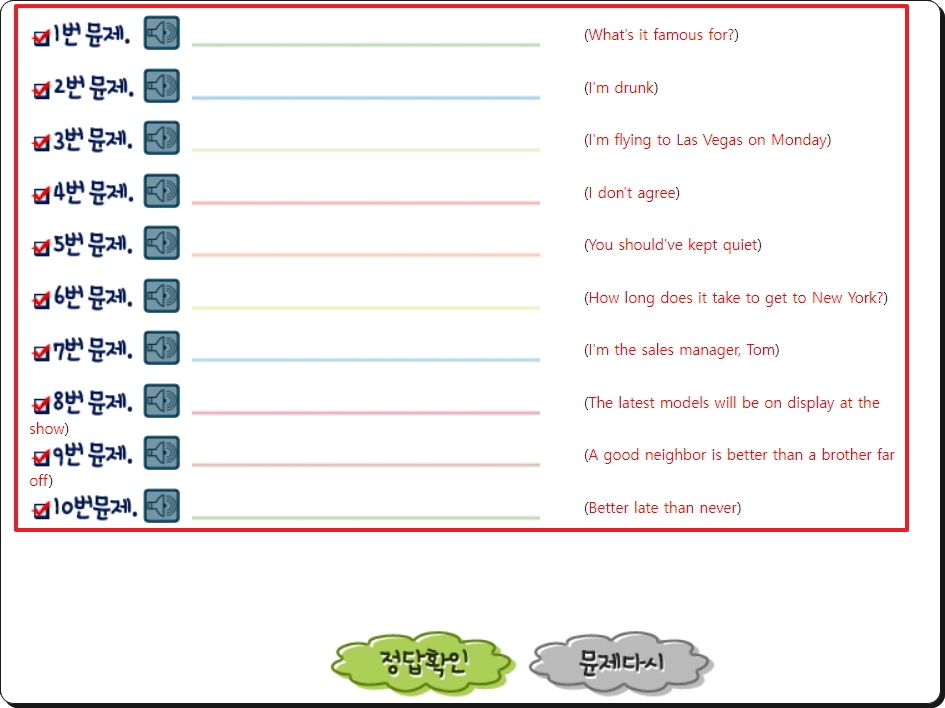 일반적으로 많은 사람들이 진행하는 연습은 아니지만, 영어 듣기를 이용한 타자연습 과정도 이곳에서 제공하고 있는데요. 이 경우는 학업이나 업무상 관련이 있는 분들만 이용하면 됩니다. 연문자판을 제대로 익히는 데에도 도움이 될 거에요.