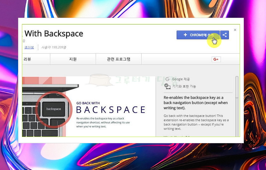 윈도우에 익스플로러 있지만, 요즘엔 크롬 쓰는 분들 많아요. 빠르고 좋거든요! 단, 엑티브엑스가 안되어서 쇼핑이나 은행 업무를 진행할 땐 좀 불편해요. 그래도 다른 건 다 좋아요. 근데 뒤로가기 단축키가 안 되는 게 흠이죠? 백스페이스 눌러서 당황하신 적 있죠? 걱정 마세요! 스마트폰 앱처럼 확장 프로그램을 설치하면 쉽게 해결할 수 있어요. 이제 단축키 사용으로 크롬을 편하게 사용해 보세요.