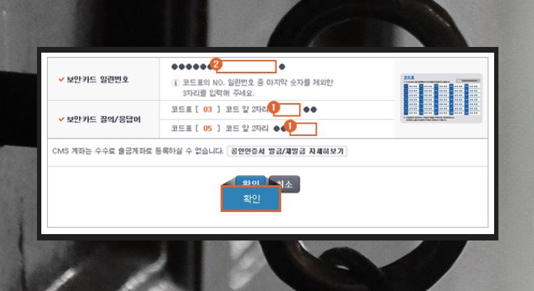 ▲ 마지막으로 보안카드 일련번호를 입력하면 되는데요.