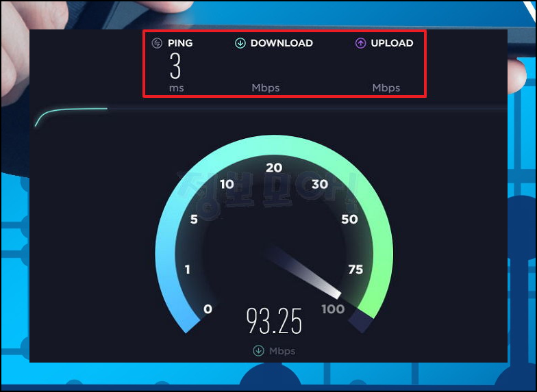 8) 핑과 다운로드 및 업로드 속도를 짧은 시간 내에 파악할 수 있습니다.