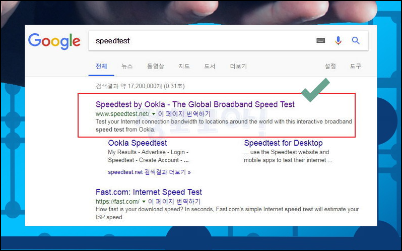 6) 로그인을 하기 어려운 경우에는 speedtest를 통해 간편하게 인터넷 속도 테스트를 할 수 있습니다.