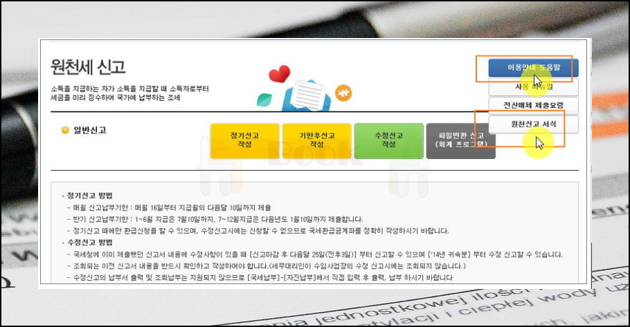 온라인으로 원천징수 이행상황신고서 양식 내려 받기.