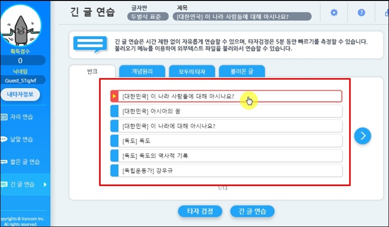최종적으로 긴 글을 잘 쳐야 합니다. 한컴 타자 연습을 통해 다양한 글을 쳐볼 수가 있습니다.