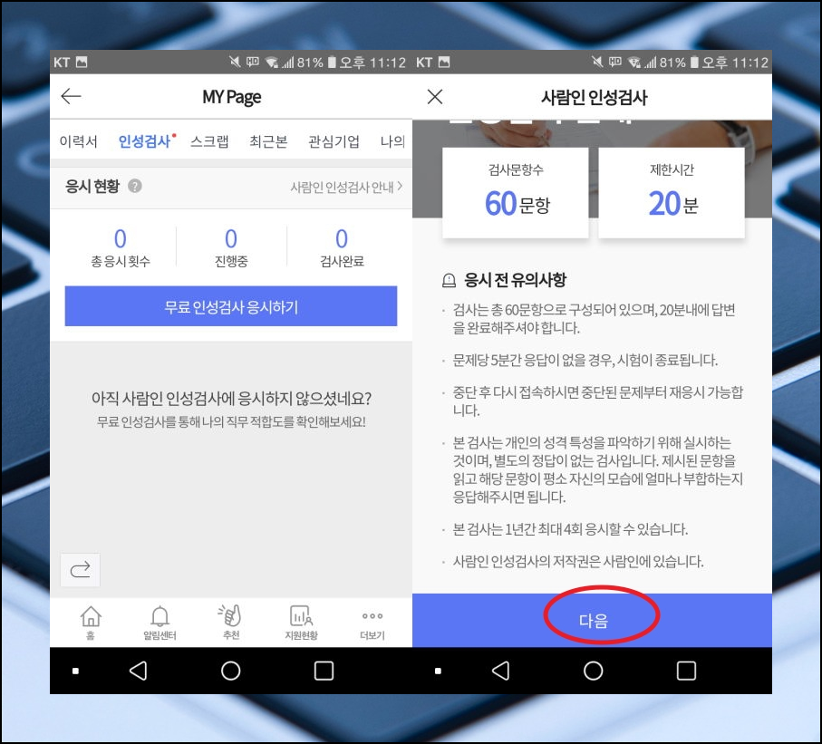 사람인 인성검사 진행 과정 및 후기.