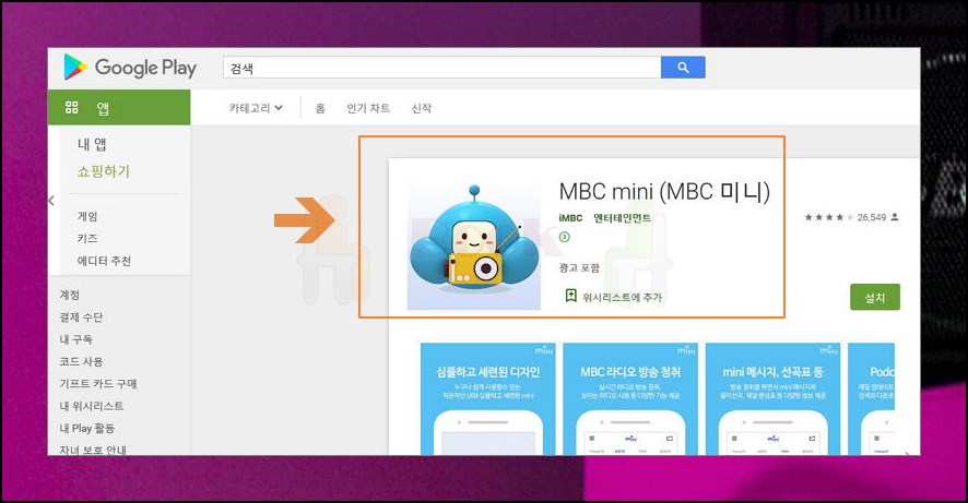 안드로이드 os를 사용하는 스마트폰의 경우 구글 플레이 스토어에서 검색하면 찾을 수 있어요. 'MBC mini'라고 검색을 하면 되겠네요.