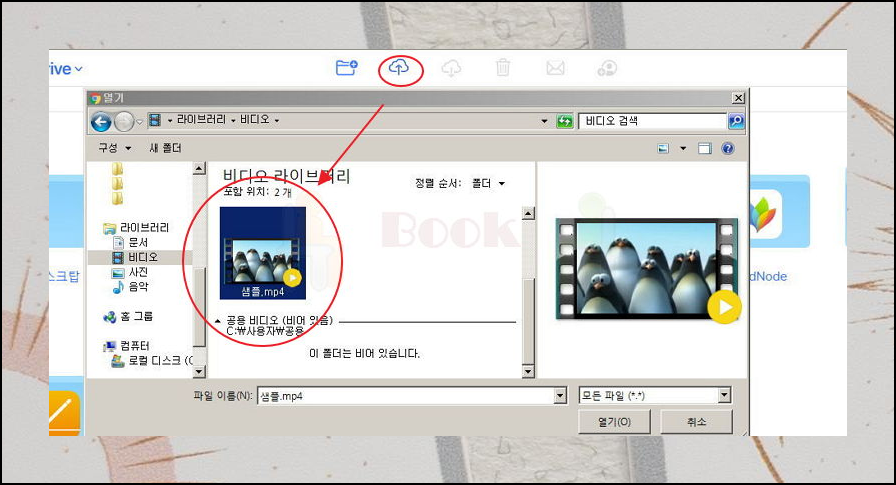 메뉴에 있는 업로드 버튼을 눌러보세요. PC에 있는 파일을 아이클라우드에 업로드할 수 있어요.