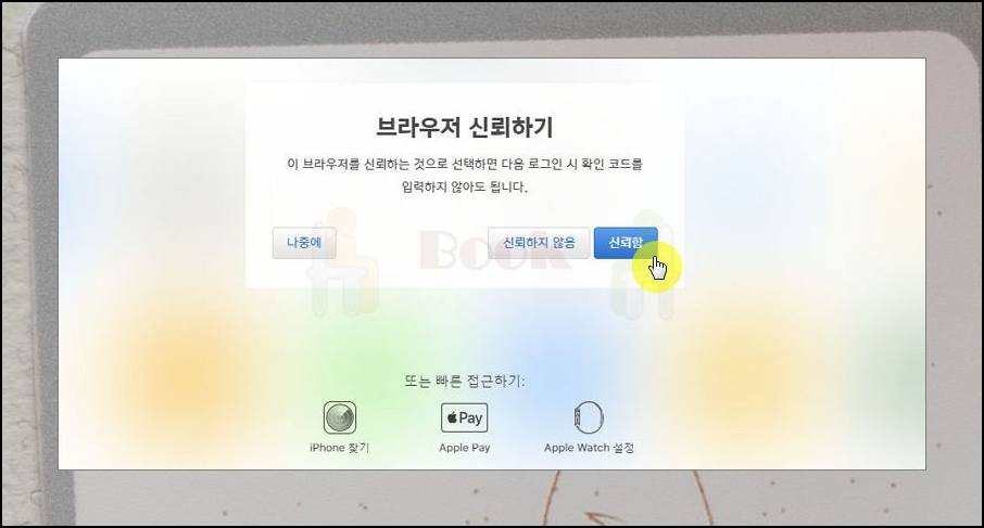 보안을 위해 확인 코드 입력이 필요해요. 본인만 사용하는 PC라면 브라우저 신뢰 버튼을 눌러주세요.