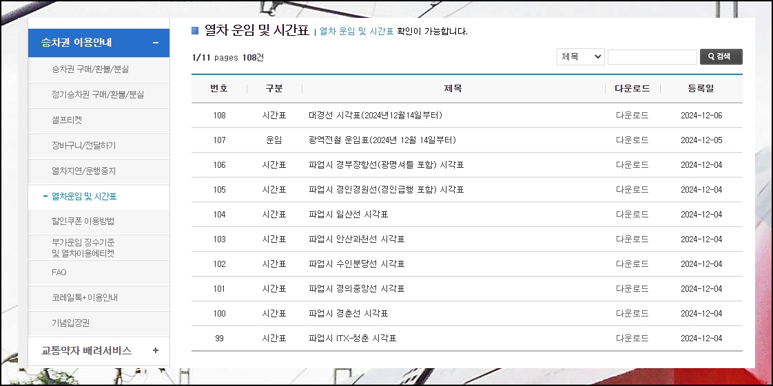 청량리역의 기차 운행과 운임에 대해 자세히 알고 싶으시다면 고객센터 메뉴를 활용해 보세요. 승차권이용안내 섹션에서는 새마을호와 ITX 청춘 등 다양한 열차의 운임 정보를 확인할 수 있습니다. 시간표와 함께 이용하고자 하는 열차의 종류별로 요금을 비교해 보시면 좋아요.