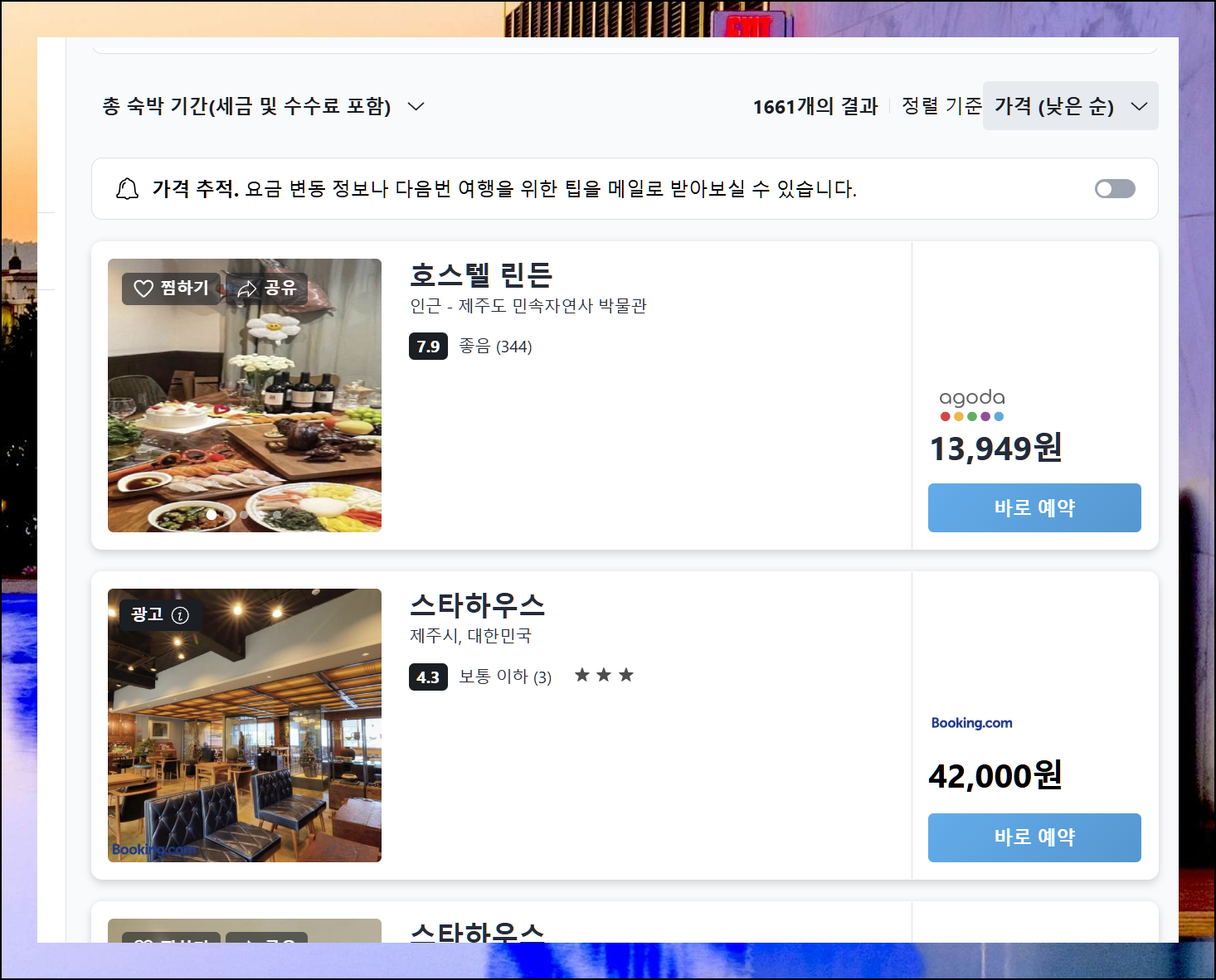 최저가부터 정렬해 보면 예산에 맞는 숙박시설을 쉽게 찾을 수 있어요. 국내 예약 시 다양한 할인 옵션도 확인해보세요. 경제적인 선택이 가능합니다.