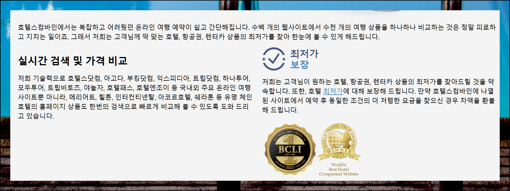 호텔스컴바인은 국내외 숙박 정보를 한 곳에 모아주는 서비스예요. 다양한 사이트의 정보를 비교할 수 있어 최적의 선택이 가능합니다. 특히 국내 숙소를 검색할 때 더욱 유용한 사이트입니다.