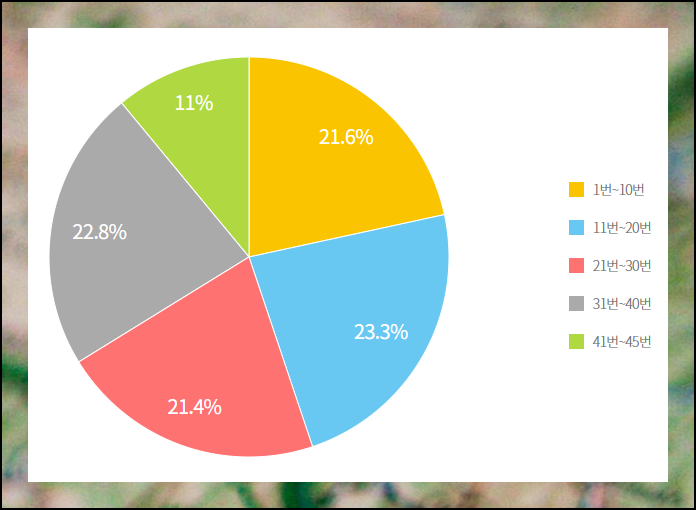 역대 로또 1등 당첨번호를 조사해보니 34번, 27번, 12번, 33번, 13번이 가장 자주 등장했어요. 숫자 구간으로는 11~20번 사이가 전체의 23.3%로 가장 높은 비율을 차지했습니다.