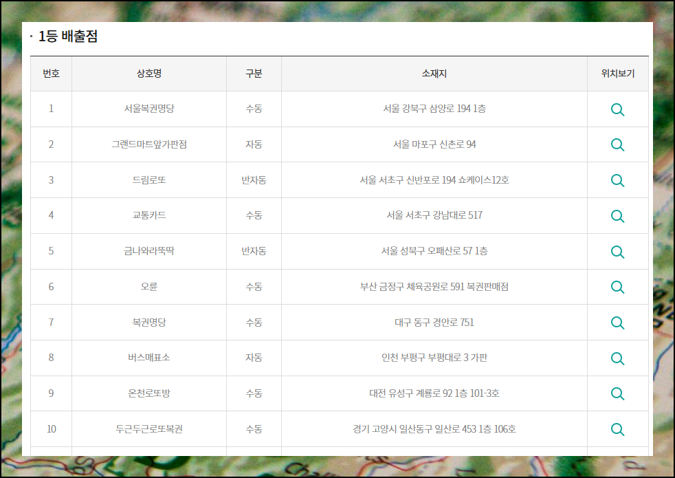 로또 당첨지역 안내 살펴보기, 1등 2등 판매점 정보